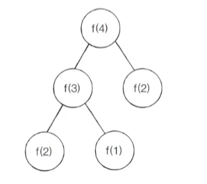 4번째 피보나치 수인 f(4)를 구하는 과정이다.