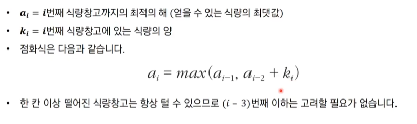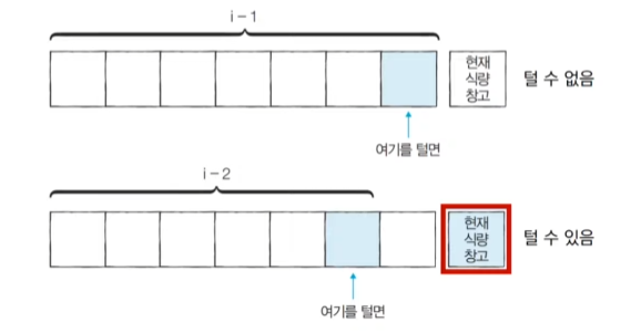 문제를 해결하기 위해 i번째 식량창고까지의 최적의 해를 살펴보자