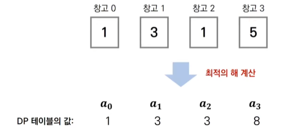 창고 1에서 최적의 해는 1과 3을 비교했을 때 큰 값인 3이다.