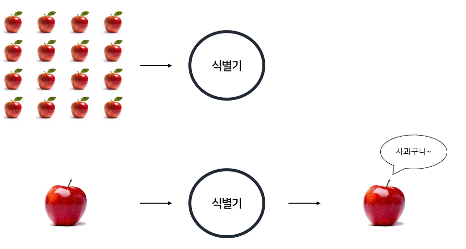 그러면 식별기가 자동으로 "사과는 붉은색 화소가 많구나" 라고 학습한다.