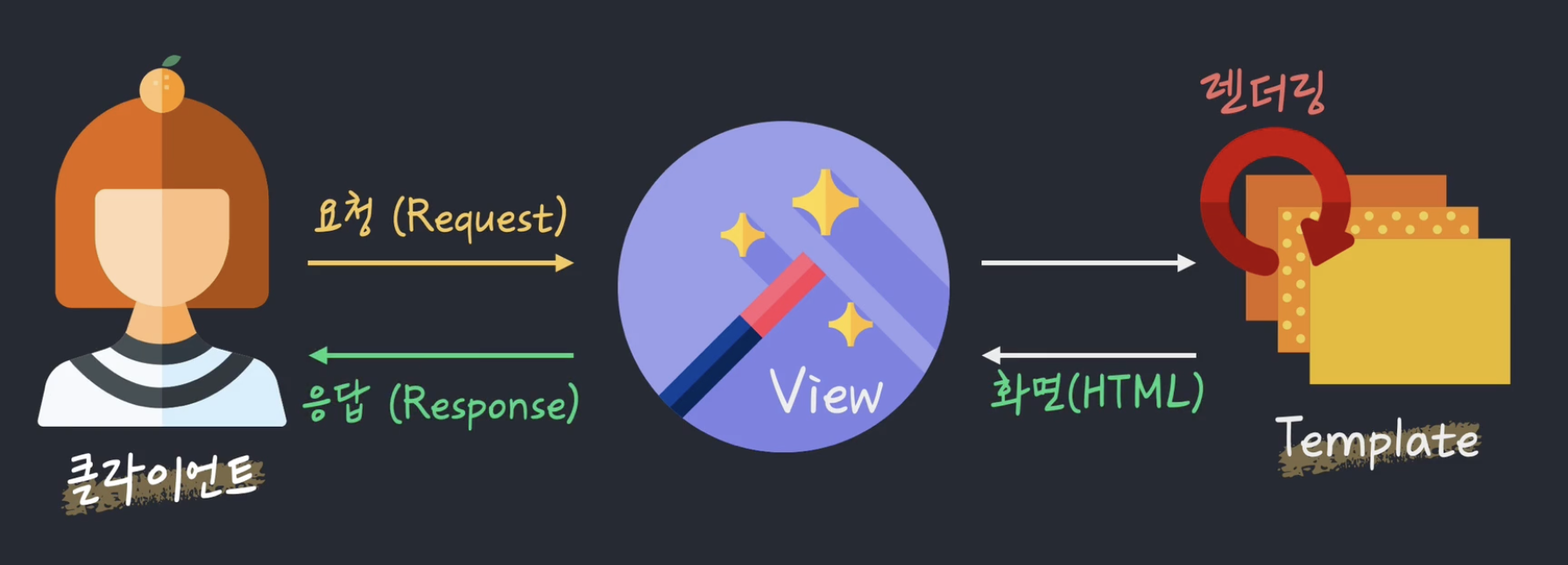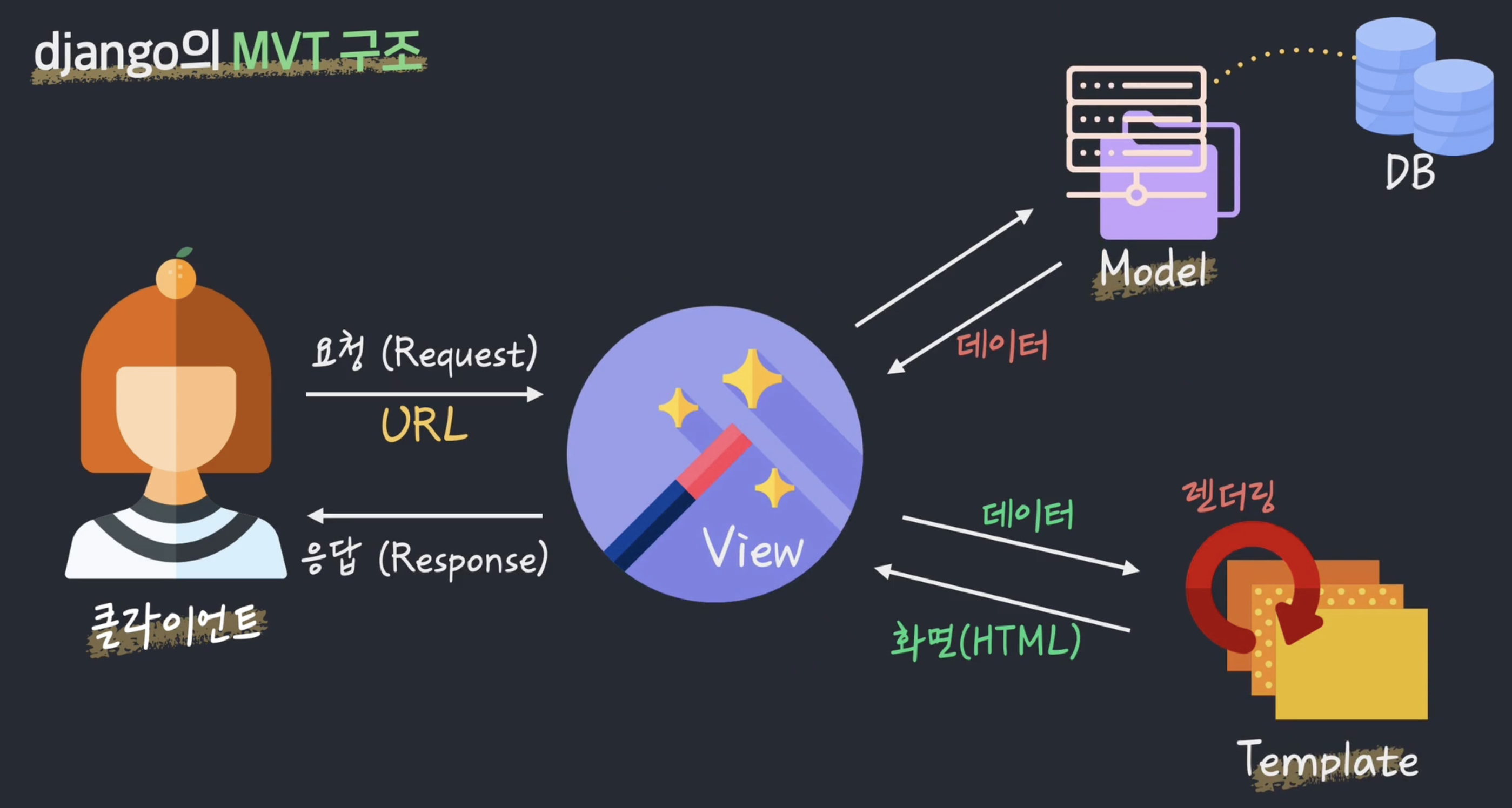 Model과 Template 사이를 컨트롤해주는 역할이라고 볼 수 있다.
