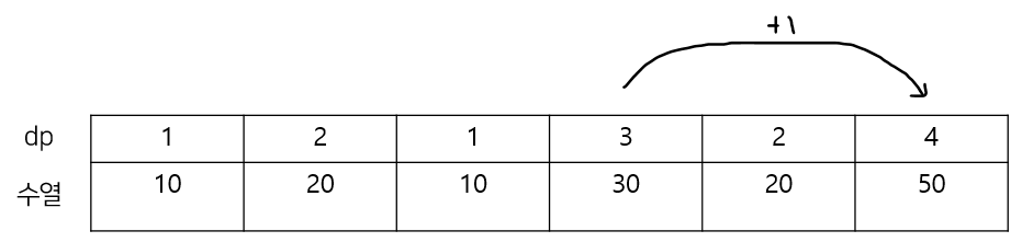 그러면 그중에서 dp에 있는 값이 제일 큰 3에 1을 더해서 4가 된다.