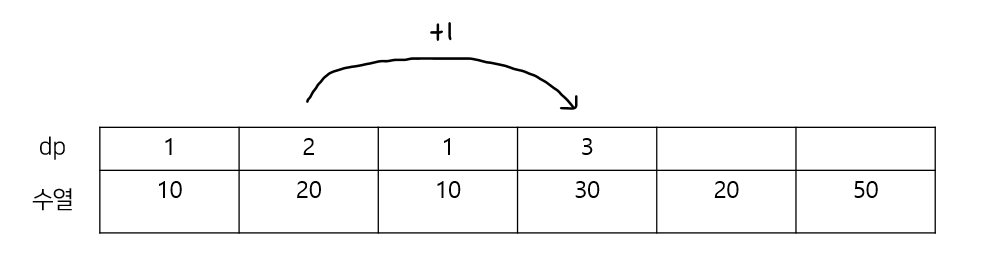 앞에서부터 훑으면서 그 자리에서 나올 수 있는 증가한 개수 중 가장 큰 수를 저장하기로 했음.