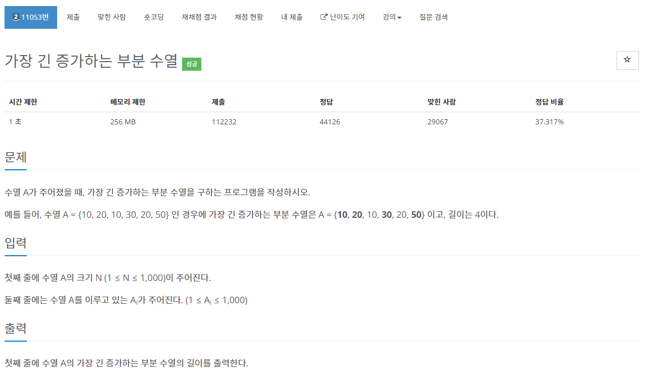 https://www.acmicpc.net/problem/11053