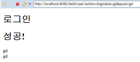 view인 jsp에서 action=login을 호출하면 controller에 있는 login() 메소드를 호출하는 방식으로 구현하였다.