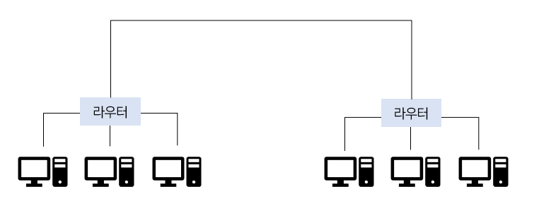 스위치와 스위치를 연결해 서로 다른 네트워크에 속한 컴퓨터끼리 통신이 가능하게 해주는 장비가 라우터이다.