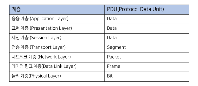 각 계층에서 다음 계층으로 데이터를 전송할 때 필요한 정보를 PDU 헤더에 붙여서 전송한다.