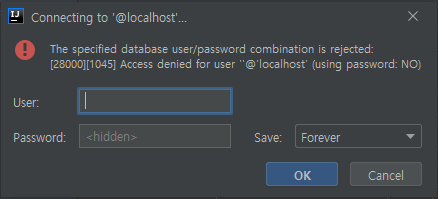 + mysql과 user, pwd 같은걸로 하면 안뜹니다