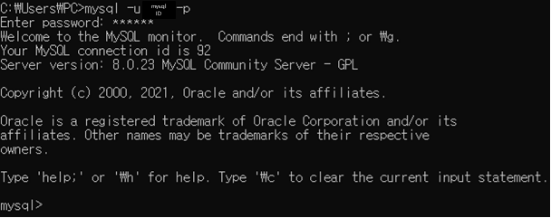 mysql> create user '(계정ID)'@'localhost' identified by '(password)';