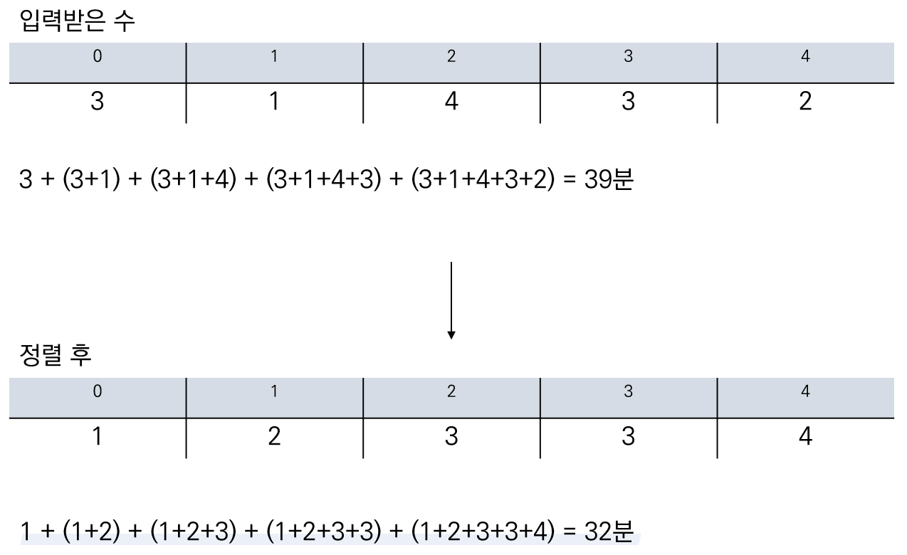그러므로 입력을 받은 후 오름차순 정렬을 하고 계산을 수행해야 하는 것이 자명하다.