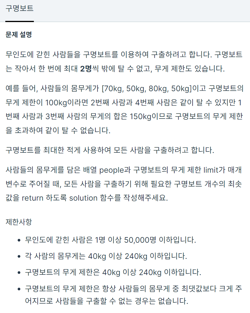 코딩테스트 연습 - 구명보트