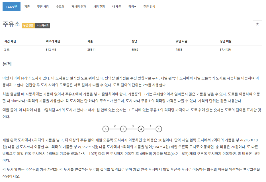 13305번: 주유소