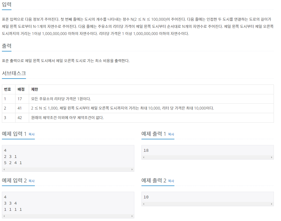 https://www.acmicpc.net/problem/13305