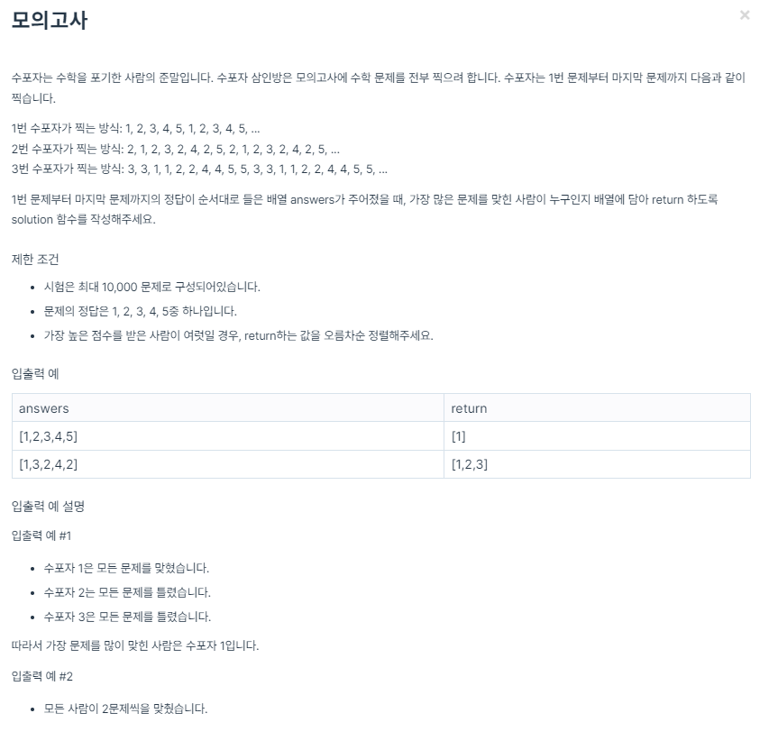 코딩테스트 연습 - 모의고사