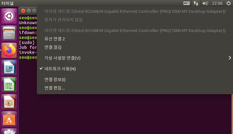 유선 연결 2 사용했다. 이 상태에서 인터넷이 안됐었다.