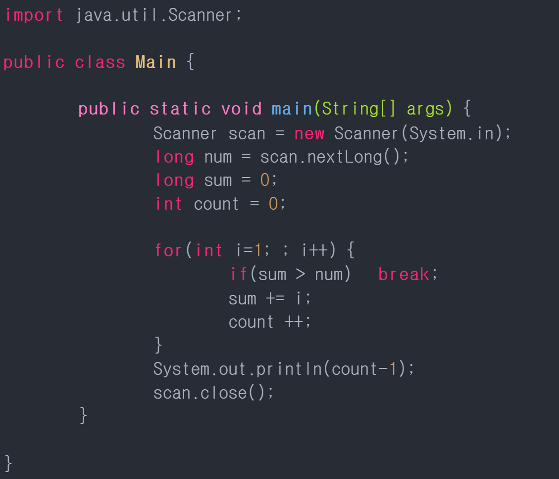 첫째 줄에 자연수 S(1 ≤ S ≤ 4,294,967,295)가 주어진다.