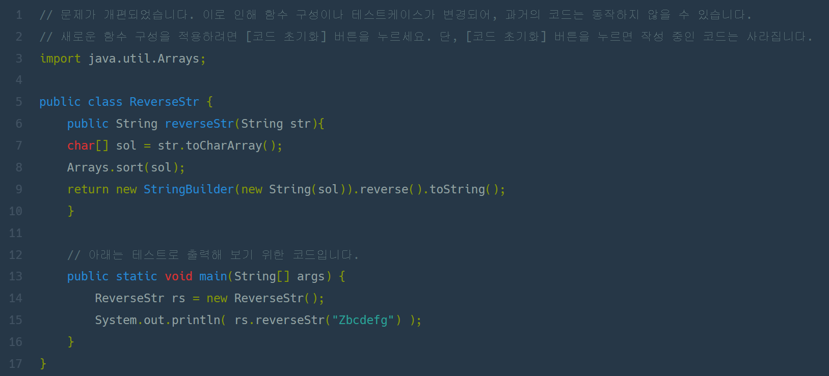 코딩테스트 연습 - 문자열 내림차순으로 배치하기