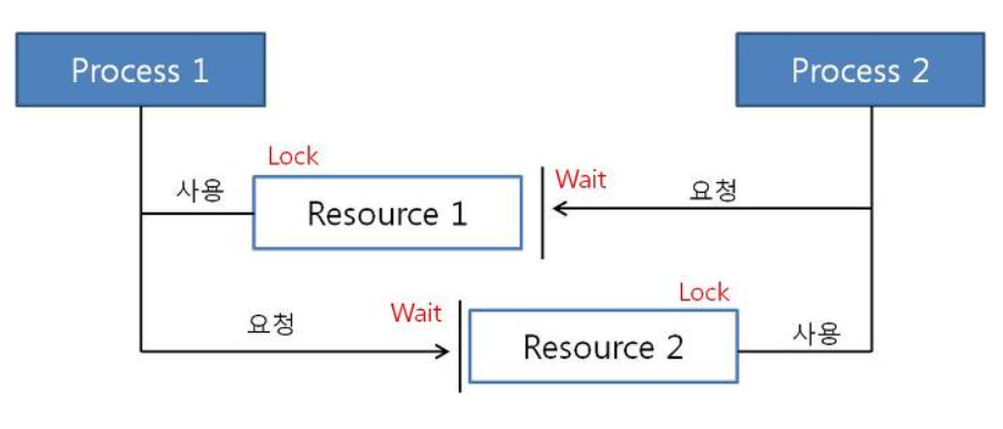 교착상태 (DeadLock) ✔️ 정의 두 개 이상의 프로세스가 자원을 점유한 상태에서 서로 다른 프로세스가 점유하고 있는 자원을 요구하며, 서로의 작업이 끝나기만을 기다리면서 둘 다 영원히 끝나지 않는 상태이다. 프로세스가 리소스를 이용하는 흐름 Request → Use → Release 요청 (Request) 필요한 자원(resource)을 요청한다. 만약 다른 프로세스가 리소스를 사용중이라서 리소스를 받을 수 없다면 대기 사용 (Use) 프로세스가 요청한 자원을 획득해 사용한다. 반납 (Release) 프로세스가 리소스를 놓아준다. ✔️ 발생 조건 4가지 다음 4가지 조건을 모두 만족해야 데드락이 발생한다. 상호 배제 (mutual exclusion) 적어도 1개 이상의 자원이 공유 불가능해야 함 ..