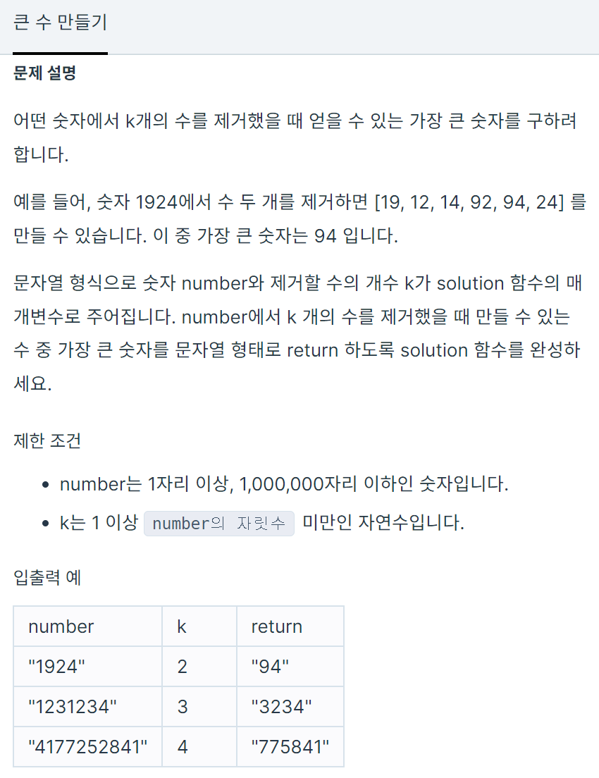 https://programmers.co.kr/learn/courses/30/lessons/42885 코딩테스트 연습 - 구명보트 무인도에 갇힌 사람들을 구명보트를 이용하여 구출하려고 합니다. 구명보트는 작아서 한 번에 최대 2명씩 밖에 탈 수 없고, 무게 제한도 있습니다. 예를 들어, 사람들의 몸무게가 [70kg, 50kg, 80kg, 5 programmers.co.kr people[] 배열이 뒤죽박죽 되어있으므로 Arrays.sort()를 이용해 오름차순으로 정리한다. 그리고 여기서 가장 큰 수는 people.length() - 1 인덱스를 가진 수 이다. 맨 뒤에꺼! 얘랑 people[0] 인 가장 작은 수와 더했을 때 limit보다 작으면 둘이 태울 수 있고 limit보다 크다면 뚱뚱이 한명만 태..